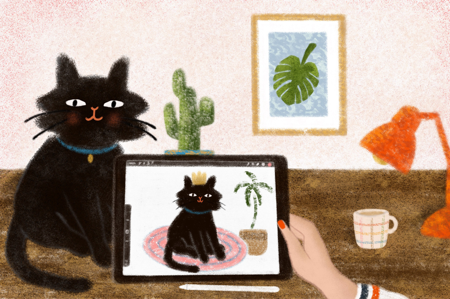 Výber z ilustrácií, ktoré som robila ako promo obrázky pre rôzne typy digitálnych štetcov pre obchod na Creative Markete.